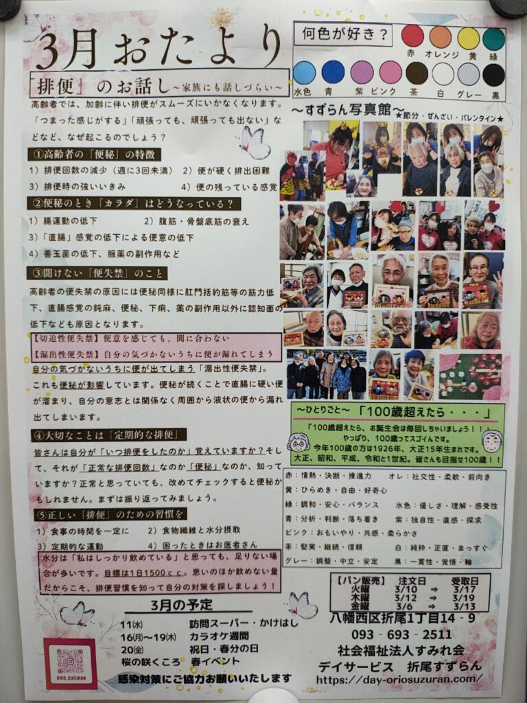 3月のおたよりは排便についてです。